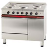 AMBASSADE DE BOURGOGNE (CE1051E) FOURNEAU 5 FEUX ELECTRIQUES et 1 FOUR électrique Gastronorme GN1/1 de marque Ambassade de Bourgogne, réf : CE1051E, habillage et façade inox, pieds inox avec vérins réglables ht 150/175 mm, puissance totale 12.7 kw, table : dimensions 1000x650 mm, 2 plaques 1.5 kw (1 de diam. 145 mm et le 2ème de 180 mm), 2 plaques 2 kw (1 de diam. 220 mm et le 2ème de 180 mm), 1 plaque de 2.6 kw diam. 220 mm,