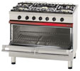 Four : dimensions intérieures : L900 - P455 - H305 mm, 2 brûleurs à flamme autostabilisée de 3.5 kw chacun, sécurité par thermocouple, thermostat, équipement : 1 grille fil, 1 tôle à pâtisserie, dimensions : L 1000 x P 650 - H 900 mm, garantie 1 an