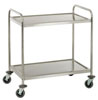 TECNOX (CHDIV10129) Chariot de service 2 plateaux inox de marque TECNOX, construction en acier inox 18/10, plateaux emboutis insonorisés, tube montant diamètre 25 inox 18/10, 4 roulettes pivotantes diam. 125 dont 2 avec freins, roulettes en polyamide avec butoir en caoutchouc, dimensions plateaux : 800x580 mm, dimensions totales LPH: 870x650x960