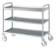 TECNOX (CHDIV10130) Chariot de service 3 plateaux inox de marque TECNOX, construction en acier inox 18/10, plateaux emboutis insonorisés, tube montant diamètre 25 inox 18/10, 4 roulettes pivotantes diam. 125 dont 2 avec freins, roulettes en polyamide avec butoir en caoutchouc, dimensions plateaux : 800x580 mm, dimensions totales LPH: 870x650x960 mm