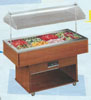 MEP (GAZEBO) Desserte réfrigérée, capacité 8 bacs GN1/1, structure en bois massif, équipement prévu pour bacs GN2/1, 1/1, et 1/2 hauteur maxi 150 mm (bacs en option), refroidissement statique, température 4/ 10°C, régulation électronique, relevage automatique de la coupole, dégivrage automatique, tablettes de service rabattables disponibles en accessoire, dimensions LPH : 1395 x 1395 x 1652 mm, garantie 1 an