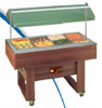 MEP (DELIZIE BAIN MARIE) Desserte Bain Marie, capacité 4 bacs GN1/1,équipement prévu pour bacs GN2/1, 1/1, 1/2,1/3, et 1/4, 30°C/ 90°C, maintien en température, remplissage manuel de la cuve, robinet de vidange, relevage manuel de la coupole, dimensions LPH : 1421 x 748 x 1480 mm